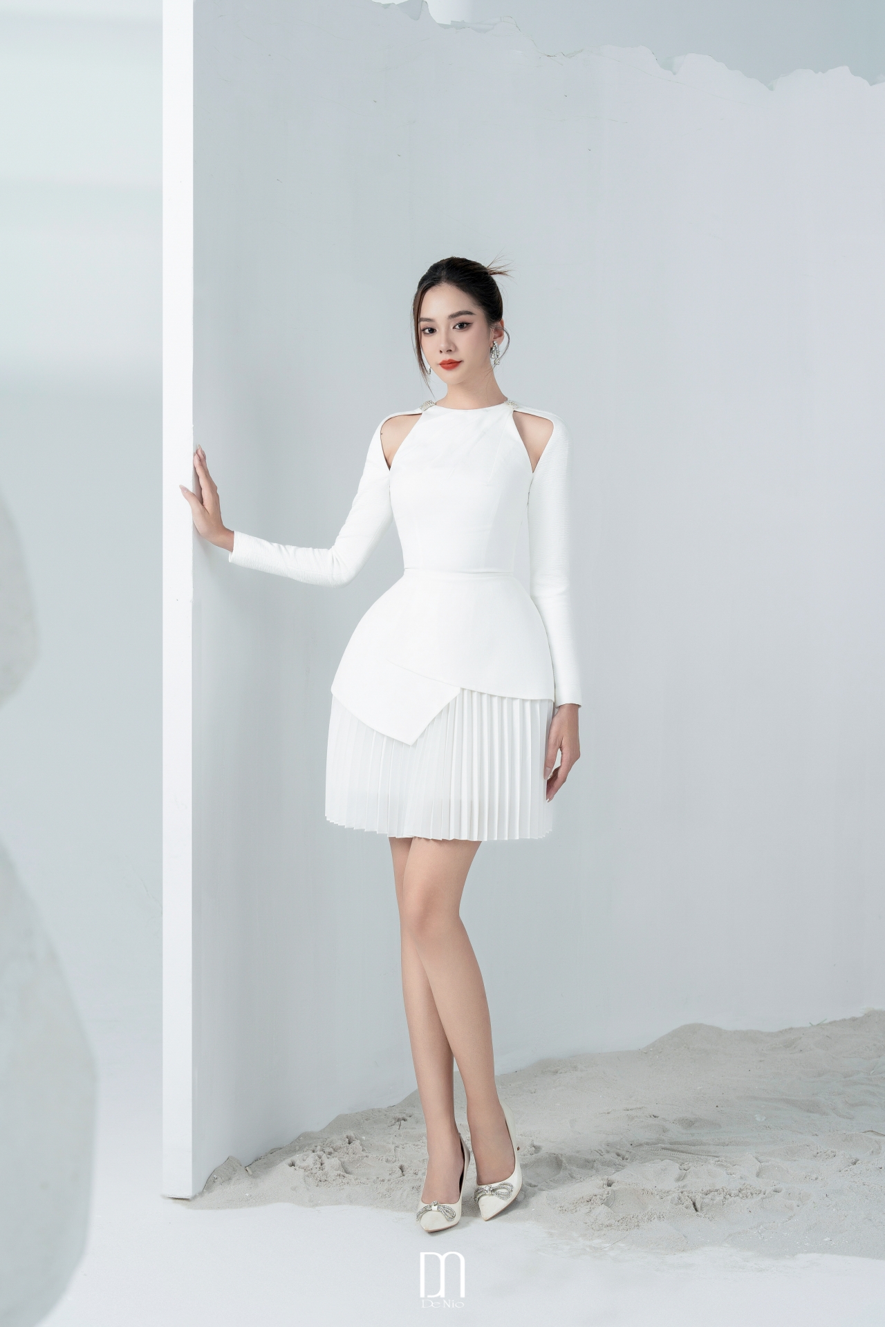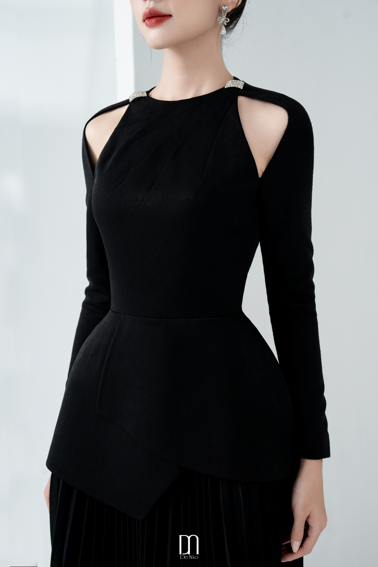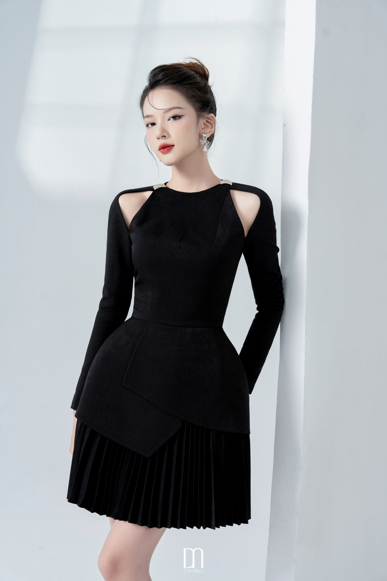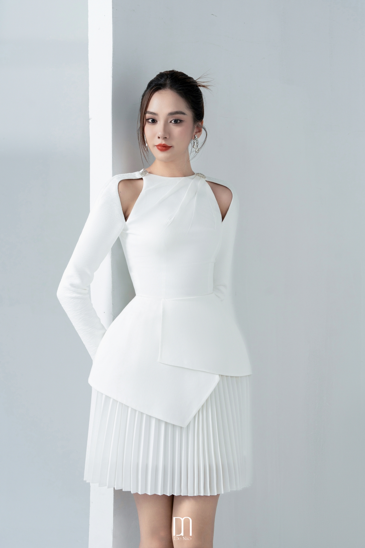 Callie pleated dress with cut-out shouder