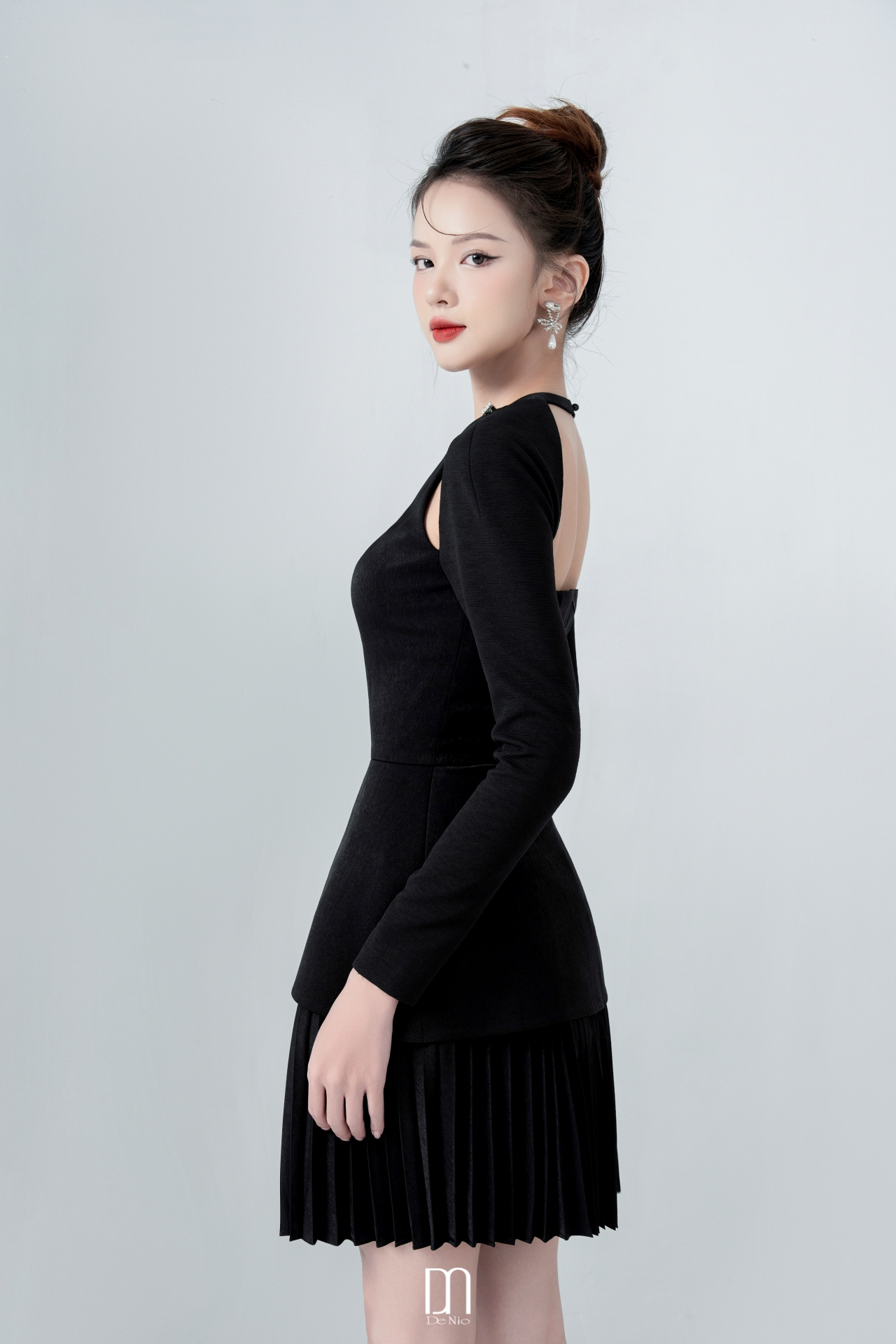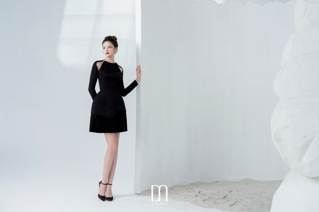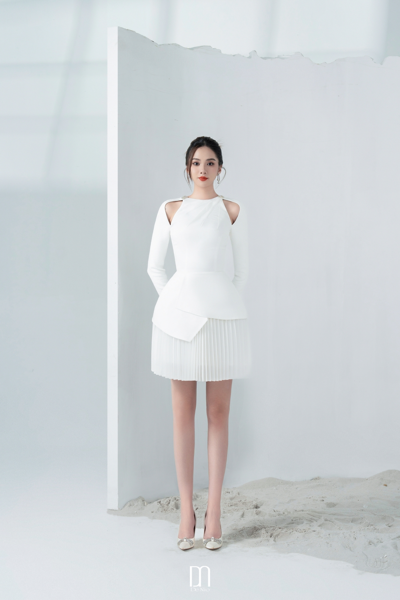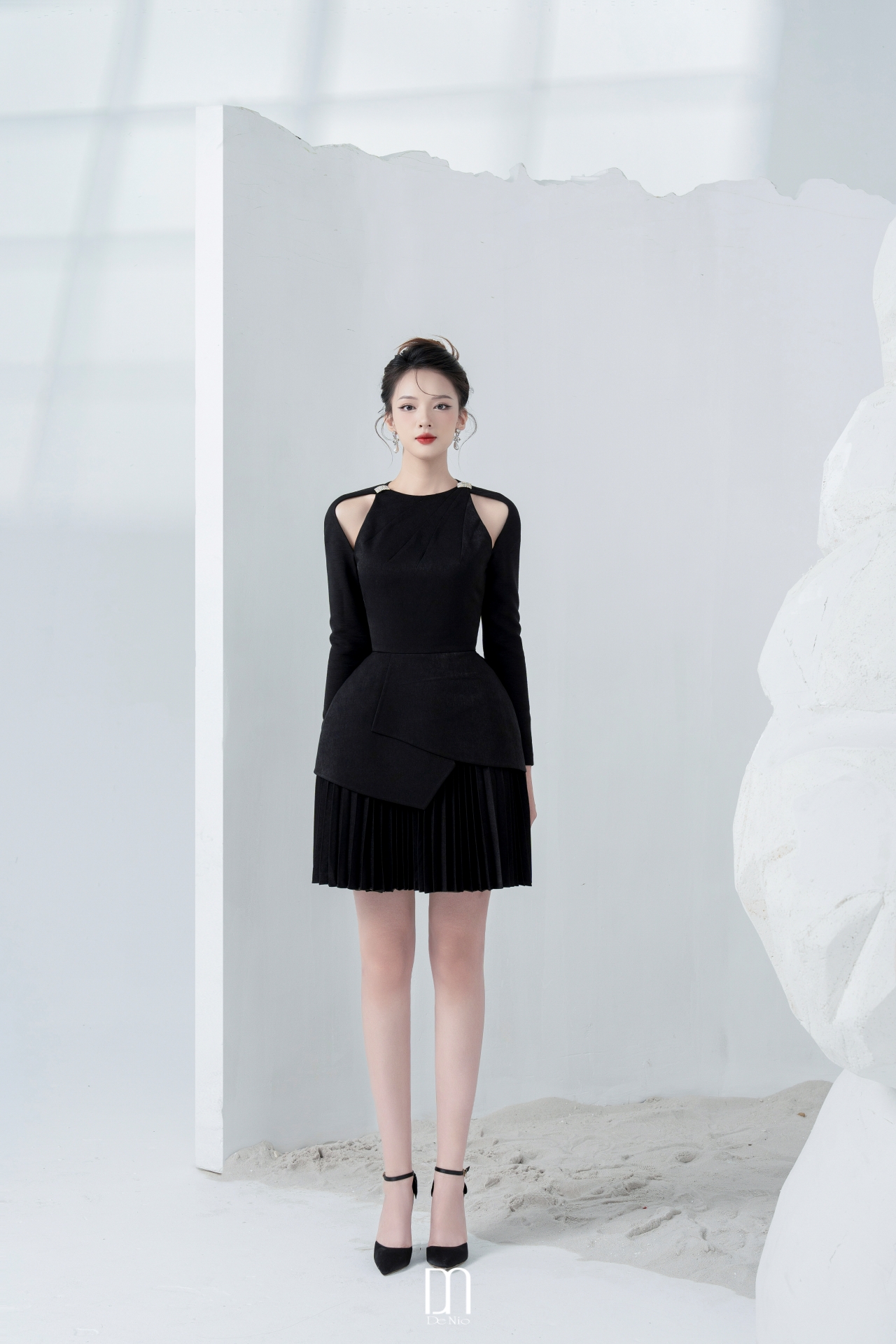 Callie pleated dress with cut-out shouder