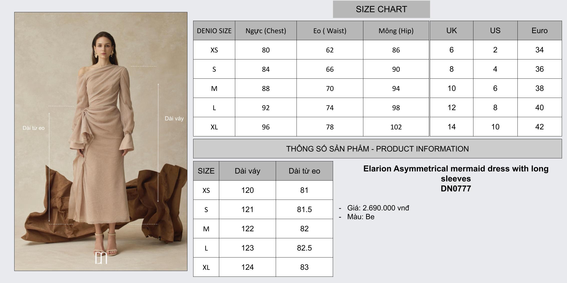 Elarion Asymmetrical mermaid dress with long sleeves