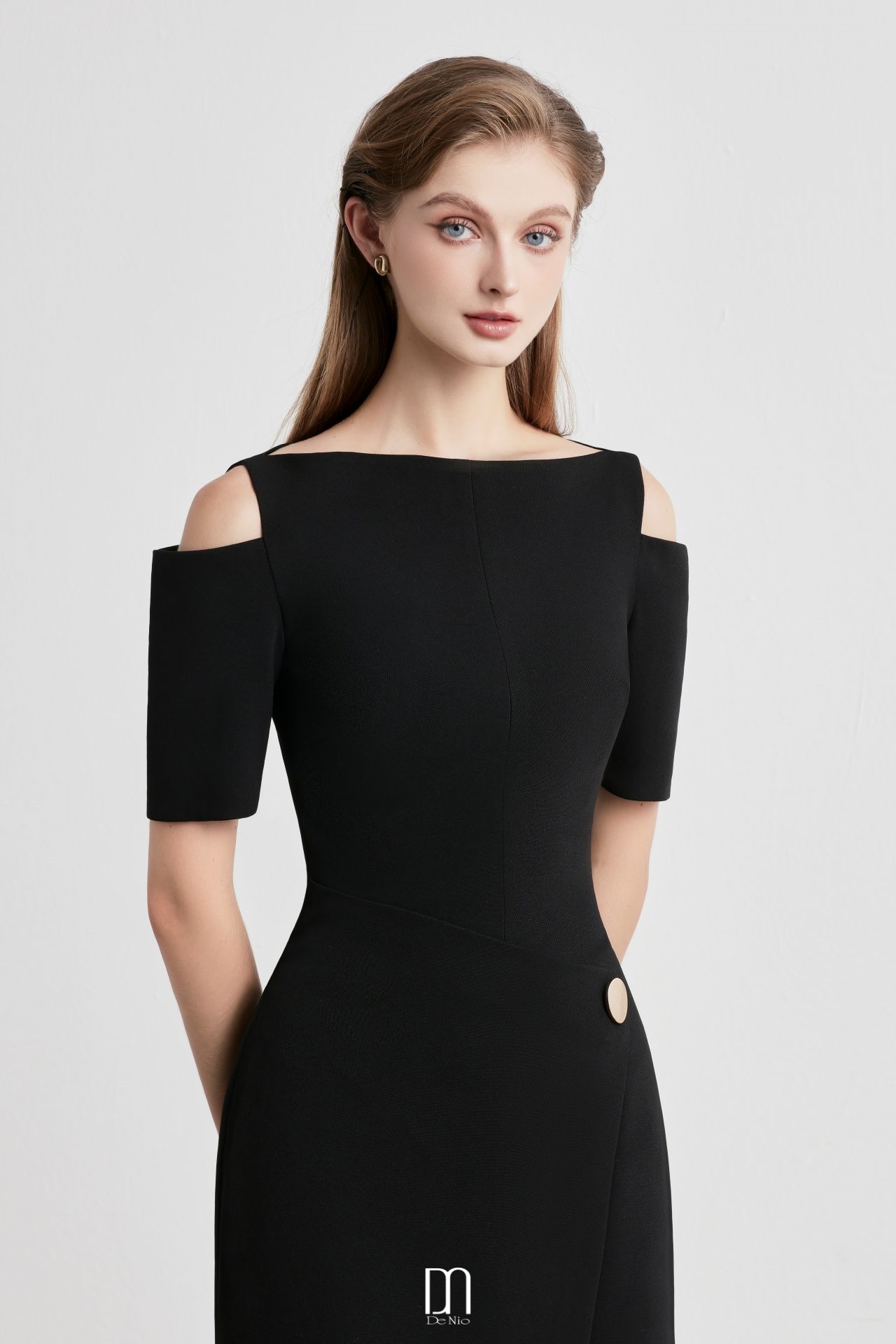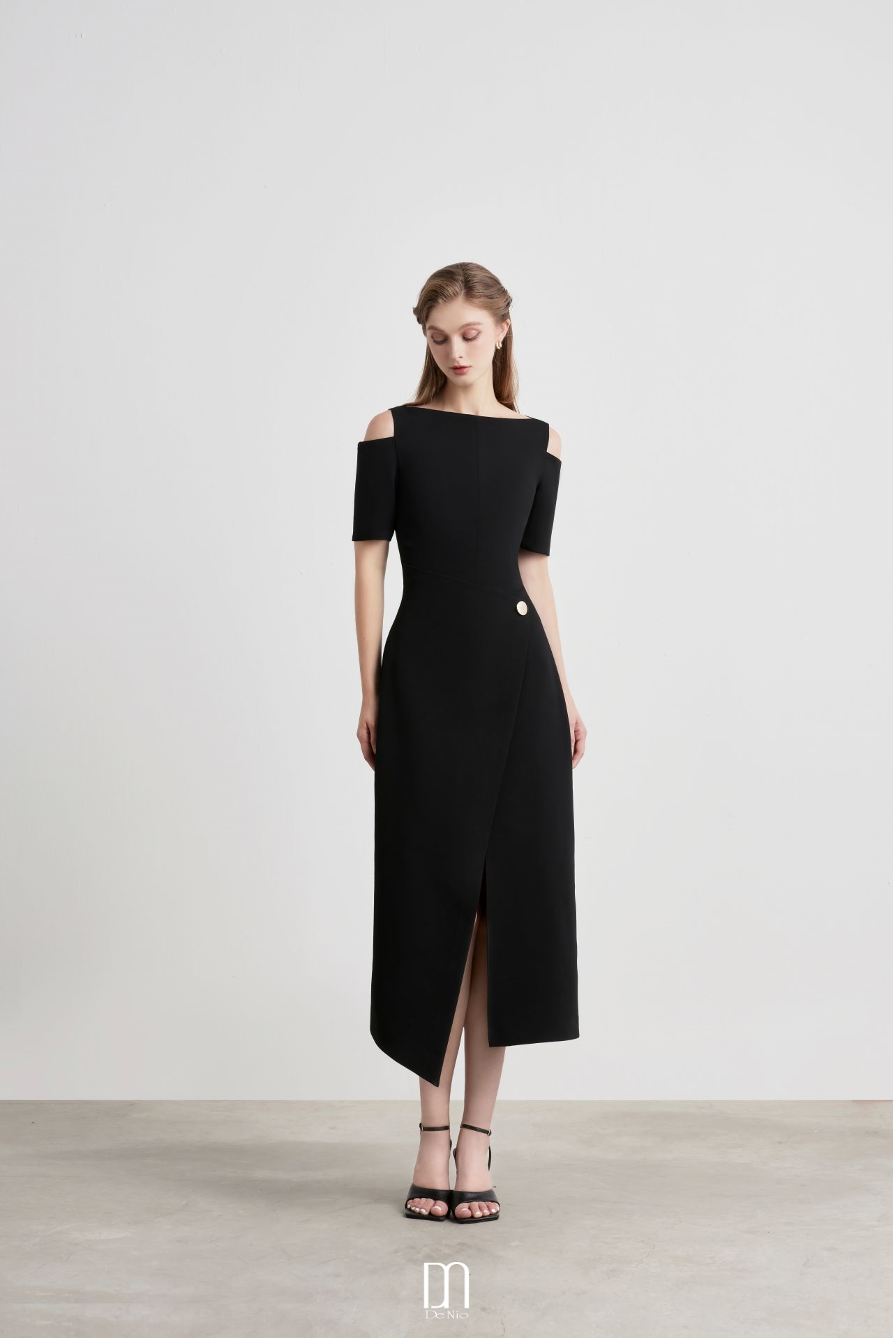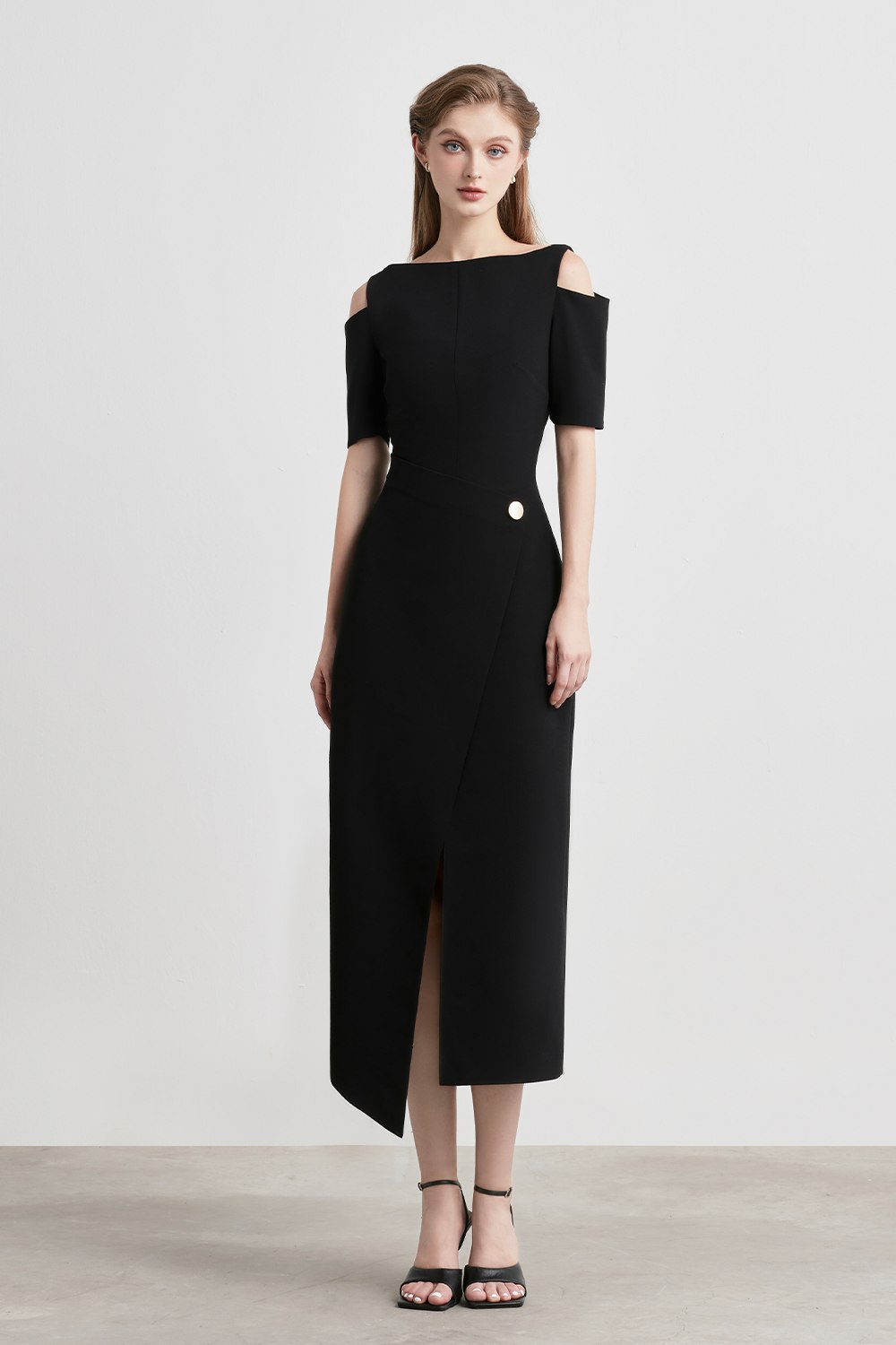 Velora Midi dress with off-shoulder and twisted hip detail